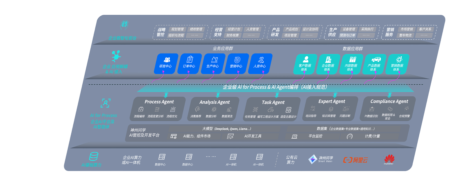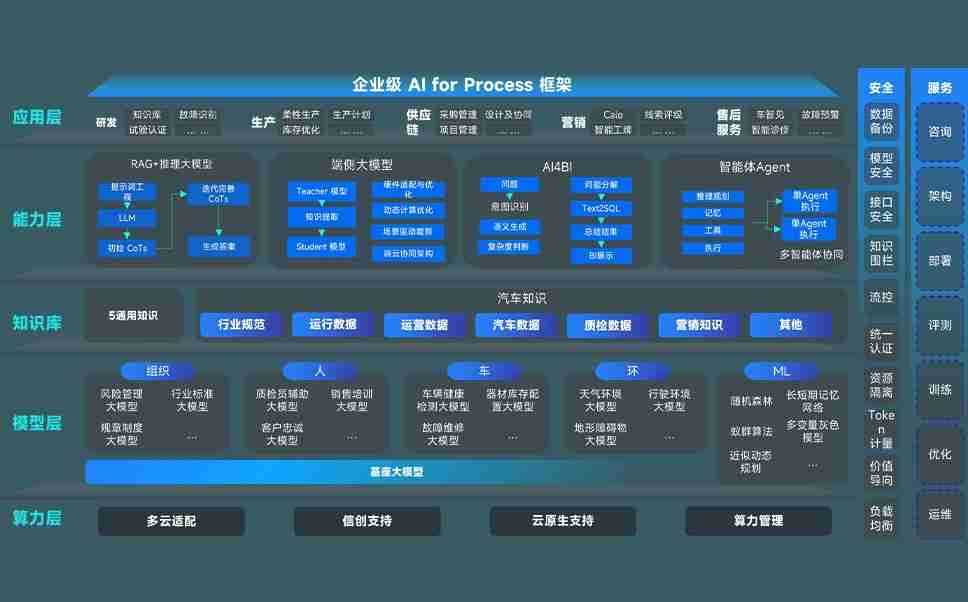 端到端的一站式AI工作空间深度融合了从企业战略规划到日常经营的全流程业务板块,,,,定向解决车企内部领域多、、、、部门多、、链条长、、、场景碎片化等难题,,,支持车企快速构建以AI为核心的生产力写作体系,,,实现任务执行与AI能力的无缝集成与交互