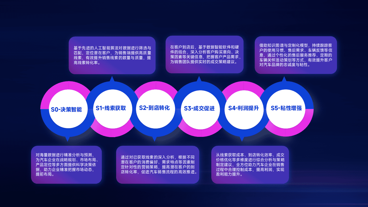通过拓宽潜在客户来源、、、优化线索分配并提高到店转化率,,,以增强销售效率。。。。同时,,,利用线索数据不断优化分析模型,,,,有效提升转化率,,,扩大营销影响力。。。